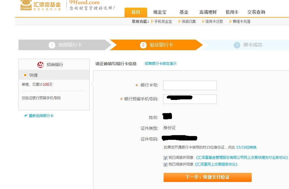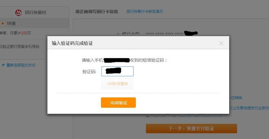 以招行快捷為例,其余銀行類(lèi)似。