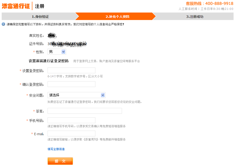 首頁(yè)>客服中心>新手上路>開(kāi)戶流程>注冊(cè)添富通行證>網(wǎng)上交易開(kāi)戶第二步