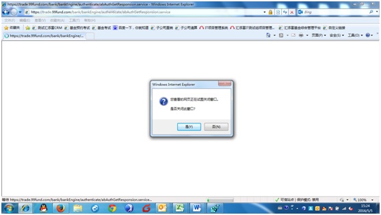 3.6 在“您選擇的網(wǎng)頁正試圖關(guān)閉”的窗口中,選擇“是”,跳轉(zhuǎn)到匯添富網(wǎng)頁,提示綁卡成功。