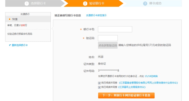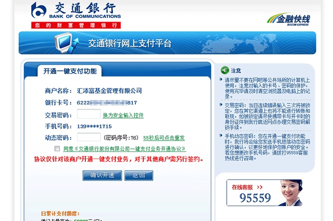 | 交行快捷綁卡演示 |