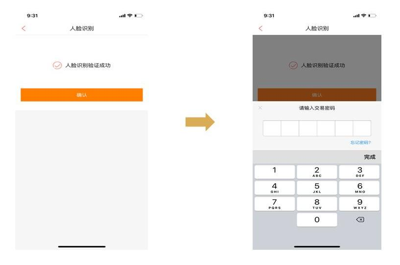 第五步:人臉識別驗證成功后點擊確認 → 輸入交易密碼